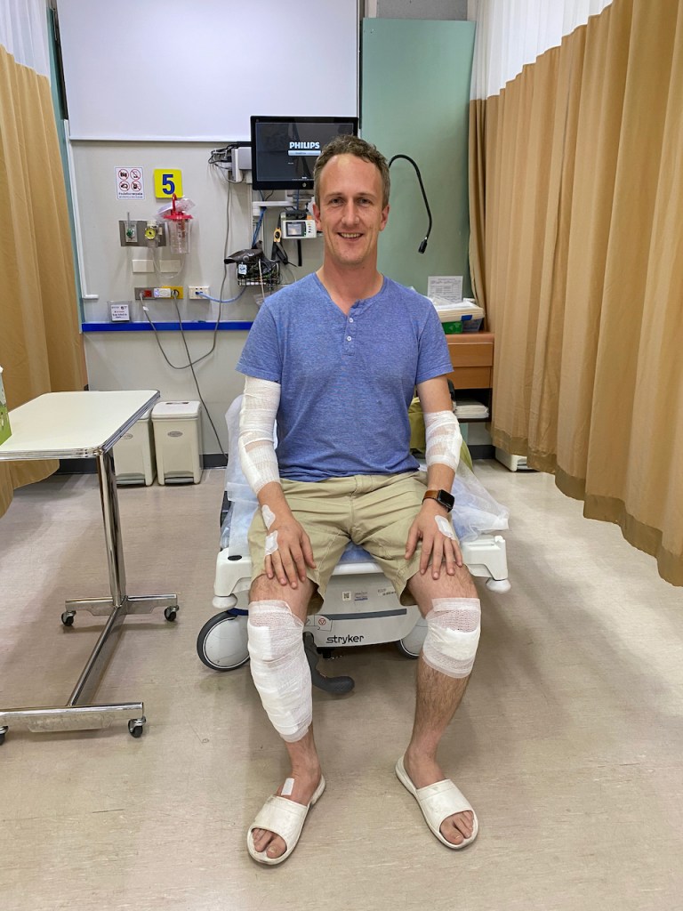 К счастью, всё, вроде бы, обошлось, руки и ноги целы, отделался ссадинами и ушибами: