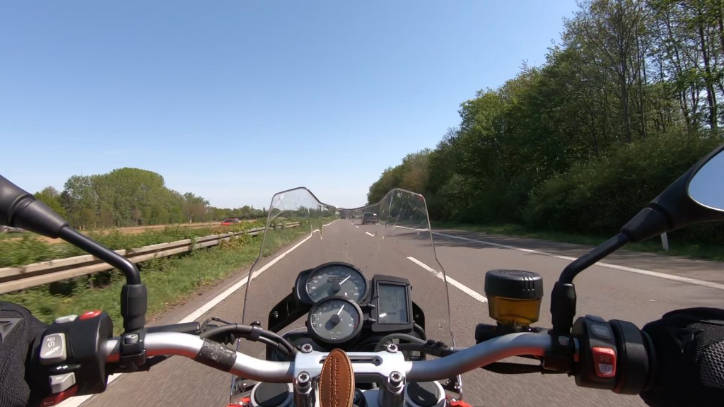 На скорости 200 км/ч на неровном автобане с боковым ветром очень стрёмно. Любая, минимальная ошибка – и тебе пиздец. Не делайте так никогда (снято с GoPro с груди):