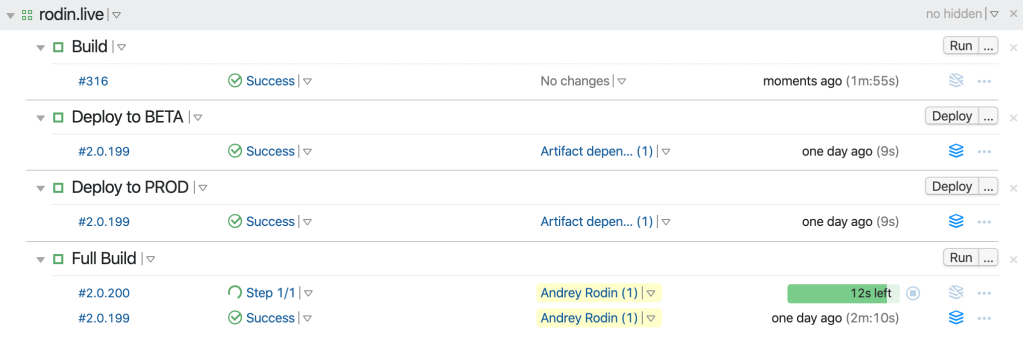 В фоне была проделана огромная работа по инфраструктуре. Благо у меня уже есть полноценный физический сервер в Финляндии. Сделал на нем пару виртуалочек на Ubuntu, поднял контроль версий, билд-сервер, сделал автоматический деплоймент. Теперь изменения занимают считанные минуты. Поправил что-то локально, залил в git, кликнул на Build в TeamCity, кликнул на Deploy – и версия в продакшене. Главное, что всю это инфраструктуру теперь можно использовать для других проектов практически без изменений.