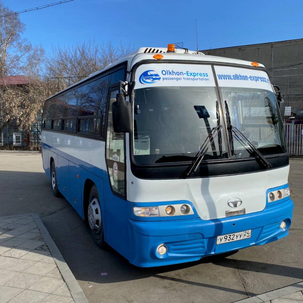 Билеты на автобус Иркутск-Хужир свободно продаются в кассе автовокзала. Вот такое чудо с надписью «Ольхон-Экспресс» повезёт нас первую часть пути: