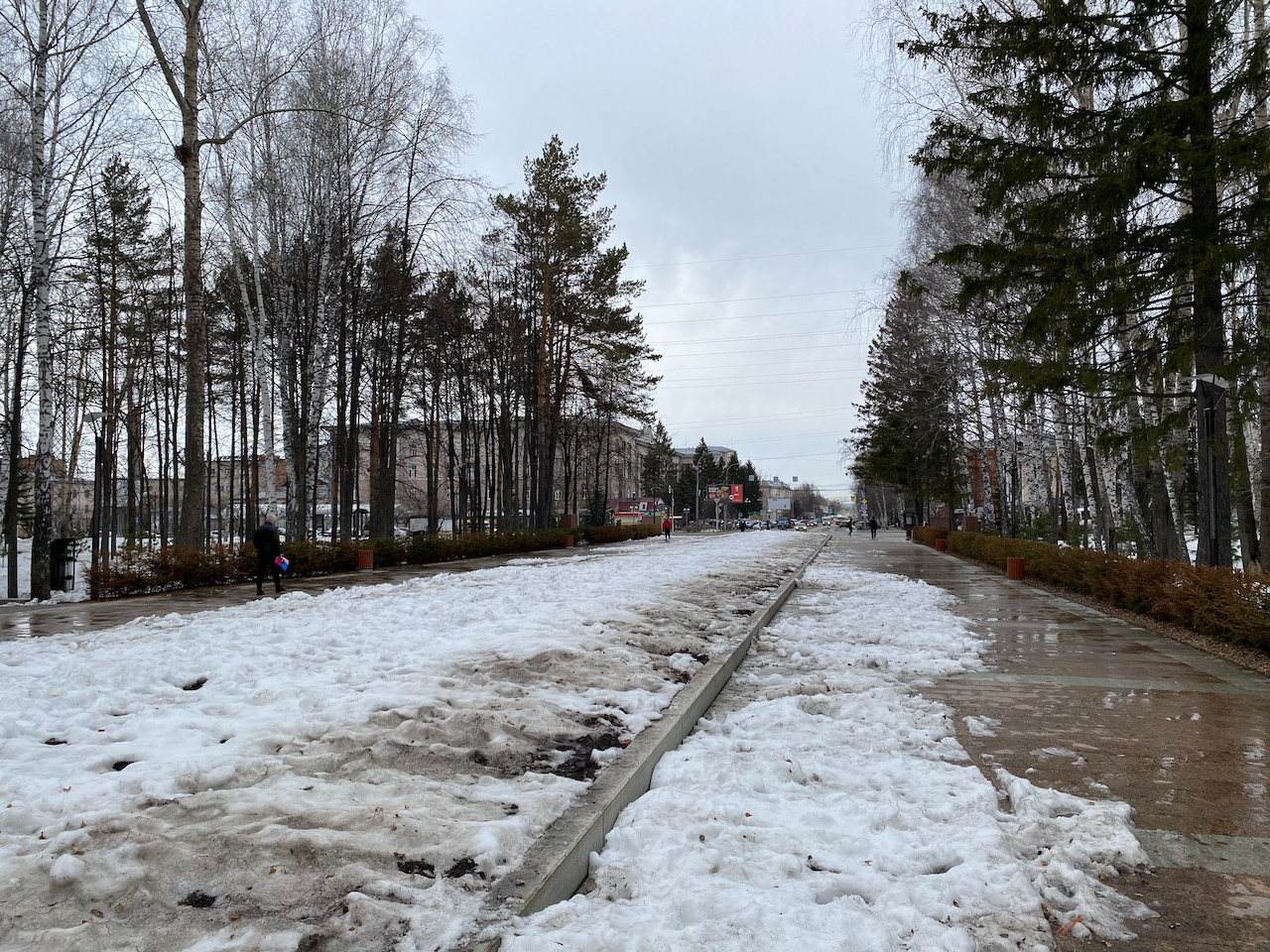 Да, тут ещё зима. Если на востоке (да и на западе тоже) всё давно уже растаяло, то в Томске прям ещё лежит снег: