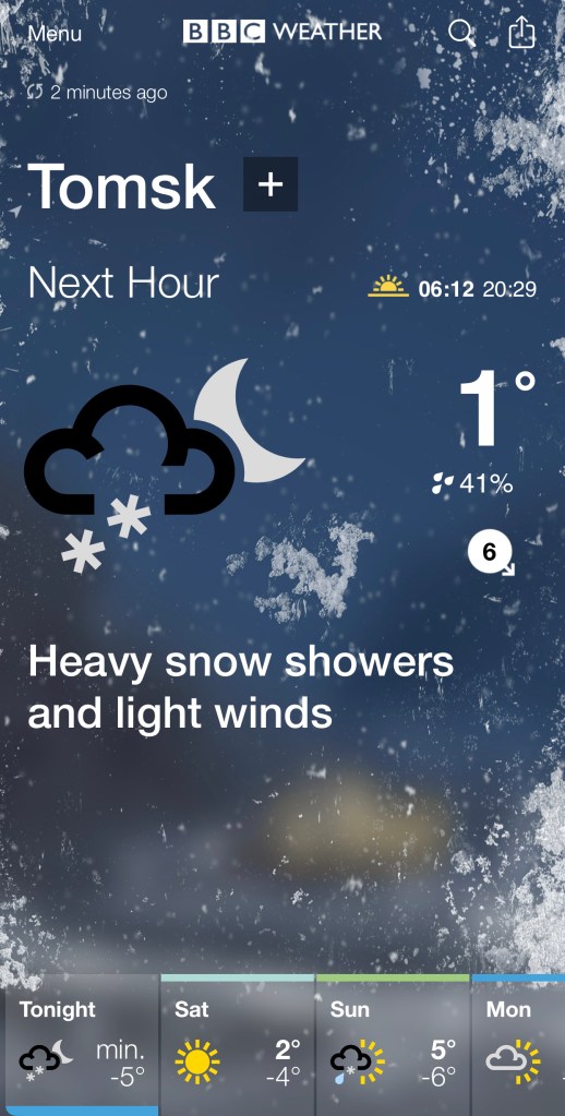Либо Красноярск не хотел меня отпускать, либо Томск принимать. Сначала самолет задержали на час (хорошо, что предупредили заранее), потом ещё на час (об этом я узнал уже в аэропорту), потом нас продержали в автобусе минут сорок, а потом мы всё-таки полетели. По прилету первый раз в жизни потеряли мой зелёный чемодан, правда почти сразу нашли. Томск встретил меня омерзительной погодой: дождём со снегом и сильным ветром. Зато Барселона совсем недалеко, всего 6 тысяч километров:
