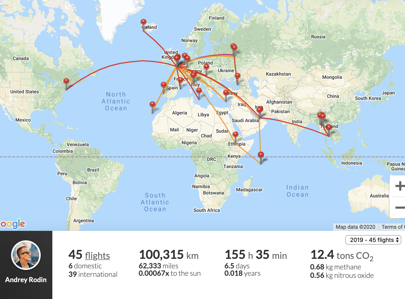 За этот год я посетил все свои любимые места в Европе, кроме Швейцарии: Лондон, Париж, Амстердам, Будапешт, Москву, ну и так, немного полазил по другим странам. Этот год стал рекордным по количеству перелётов (47 в качестве пассажира), но не побил рекорд прошлого года по расстоянию – на этот раз всего два раза вокруг Земли или 85000 километров: